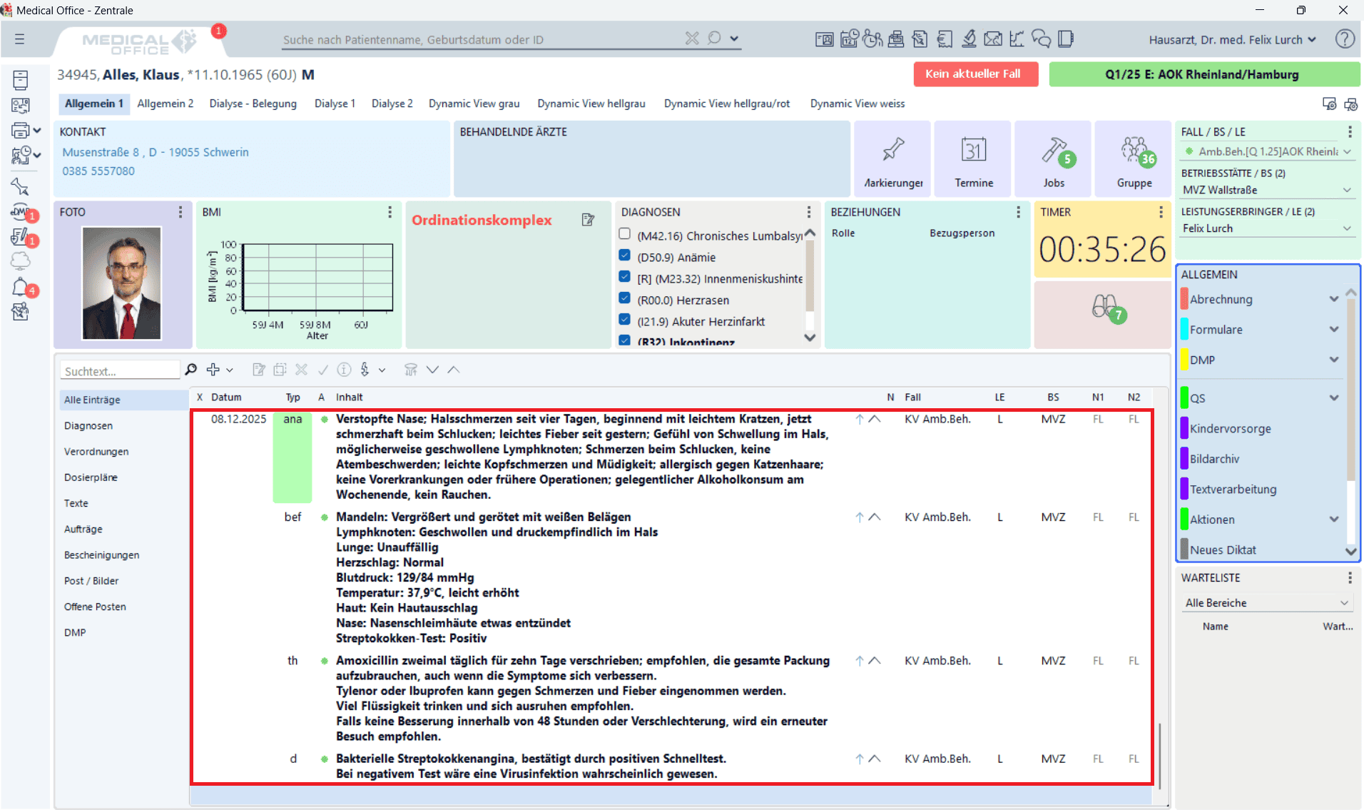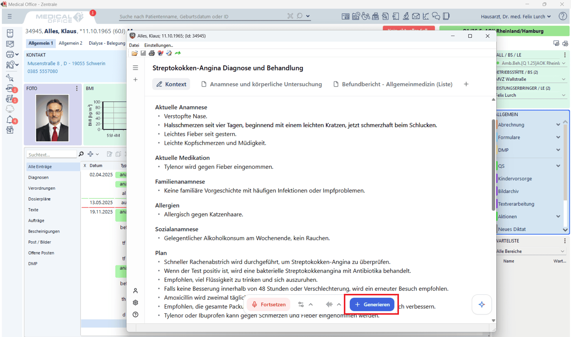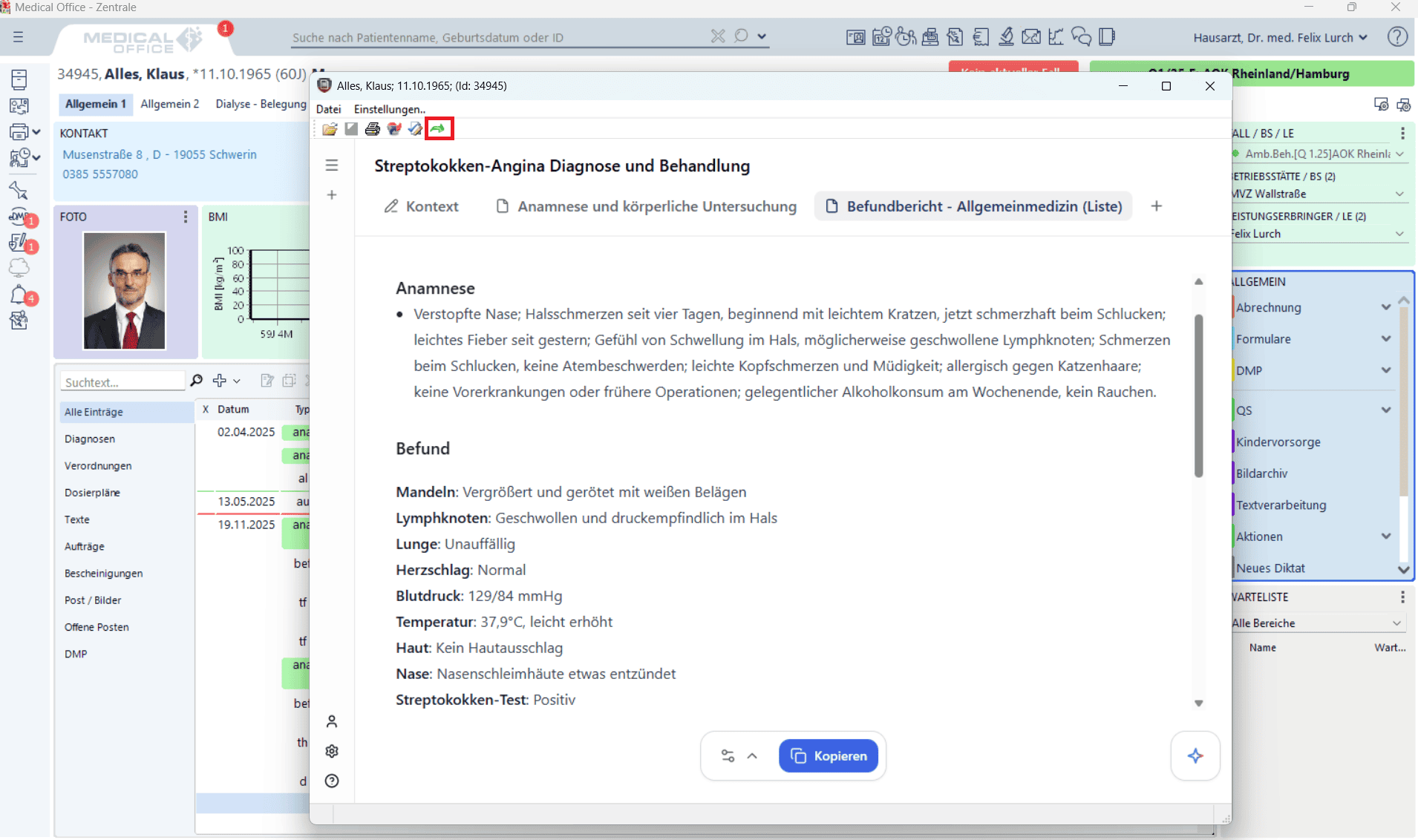 dns.comfort bietet eine nahtlose Einbindung in über 80 Arztprogramme und Verwaltungssysteme (KIS, PVS, ePA). Texte werden automatisch in die entsprechenden Felder oder Zeilen der Karteikarte übertragen, was die Dokumentation erheblich erleichtert. -
